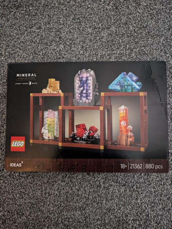 This is an amazing piece of lego but quite difficult for some of it to be put together. It does say it's for 18+ but my 11 year old daughter helped me as a lot of it is quite simple to piece together. It does take quite a while to put together, there are 7 bags of lego and within some of the bags there are additional smaller bags, each one takes about an hour to put together. You 1st construct the base for each mineral to sit on but once everything is constructed it genuinely looks amazing. There are instructions for each bag which you follow and it helps piece by piece to put this together, in total there are around 900 pieces but it's a brilliant way to construct and test you mental agility. We love lego and how it looks when completed and this is an amazing piece and looks fantastic.