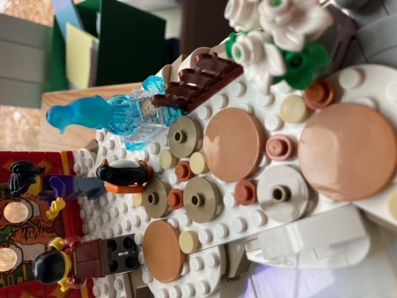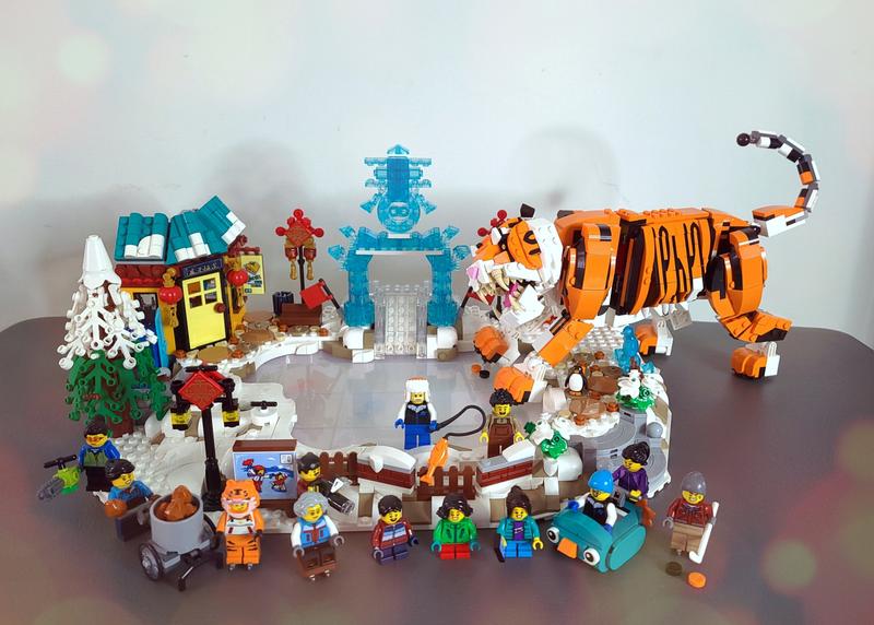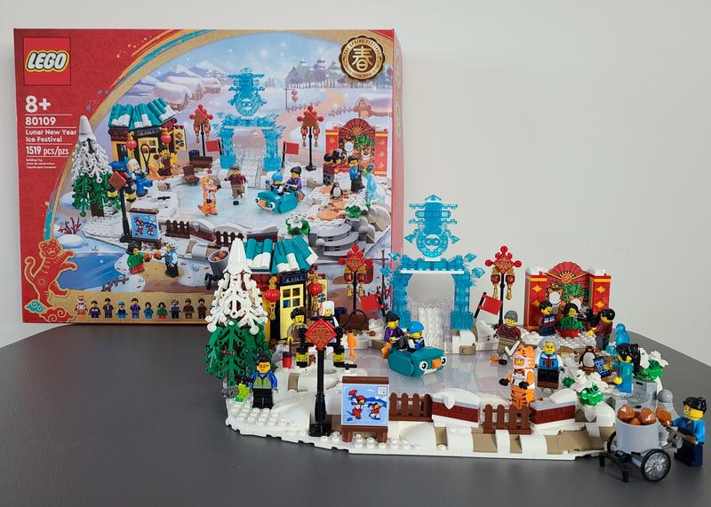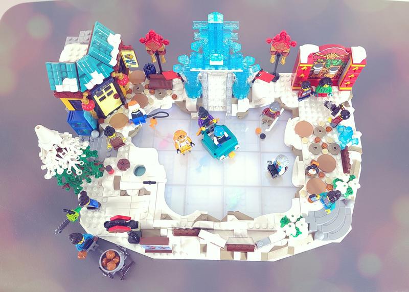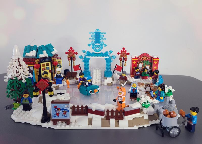 I enjoyed this set way more than I expected. It displays really well, especially when sunshine gets to the ice sculpture and the pearl-translucent ice rink. So many storylines you could make up with the mini figures too. I agree that the mini figures are emphasized a lot in this set, but that is what Lunar New Year festival is: it’s about the fun activities people can do together. The building experience, however, is fun but less attractive compared to the finished product. You will be spending most of your time building the base of the ice rink. I also agree this set could benefit from having more LNY related items. On the other hand, less emphasis on the LNY items also makes this set to fit in any winter village themed displays easily.