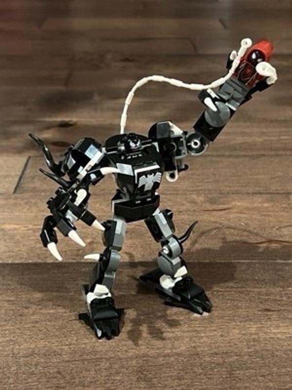 This is a very great set. It has two minifigures and it takes 30 min to 1 hour to complete. The venom mech is very easy to move, and fun to play with. The fingers on this set are very, very, very cool, as you can use them to grab other minifigures!