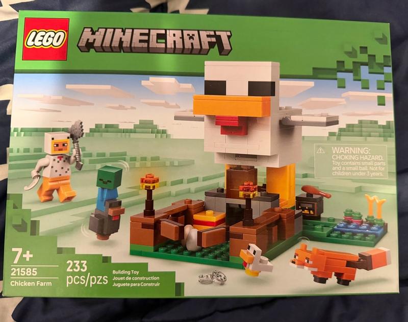 First LEGO set I've bought since I was a child, and I was really impressed. The price per piece is very reasonable, and the set packs a lot into it considering its size. 5 figures (technically) on top of a pretty substantial build with a lot of accessories makes this a great package. I bought to connect to some older sets for display rather than really play, but I can tell there's a lot of playability with this set. The chicken is interactive with 2 mechanisms one to lay eggs and the other to drop seeds and feathers. Its wings can be moved up and down, and its designed to be easily removed from the rest of the build so maybe it could be used as like a giant toy on its own or simply placed somewhere else. The pen and farming area also compact a lot onto the base of the set. The building process itself is engaging as there's a variety of parts. Of course with the chicken you have to repeat the same building steps twice for stuff like both of its legs. But the chicken is surprisingly quite a complex build due to the several features it includes. One criticism I have and this is just pretty much universal with modern LEGO Minecraft (I assume to cut costs?) but there's a noticeable lack of space, the base plates included give room to just about fit the structure and farm area this set includes, but there's not really any space for some standard terrain. When putting all the minifigs/mobs on for a photo, I couldn't even really find enough room to fully attach the Fox to the build. I also think the chicken build itself would've benefitted from a base plate to cover the top and conceal the holes where you put the seeds/eggs in. It looks a bit unfinished from the sides because of this, but I assume kids wouldn't really mind about this part. Most of the jumper tiles (the flat pieces that have a connecting bit in the middle) are mostly 2x4 rather than 2x2, which I feel might make it difficult for anybody to use the pieces in this set to make something original, but that's another small gripe. Overall its a fantastic set and I'm definitely excited to start collecting more in future. Its flaws are minimal and I imagine most won't actually care about them. This isn't even just great value for 2026, it's historically great value for this theme. Definitely worth the price.