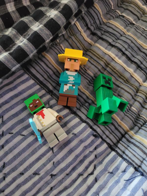 I really love all the details with this set. The goat's head can move, the chest can open and close, the printed cake brick, and bread bricks makes this set worth it! I love how the villager minifigure even comes with a little hat! I do wish the creeper's legs could move, but it's no big deal.