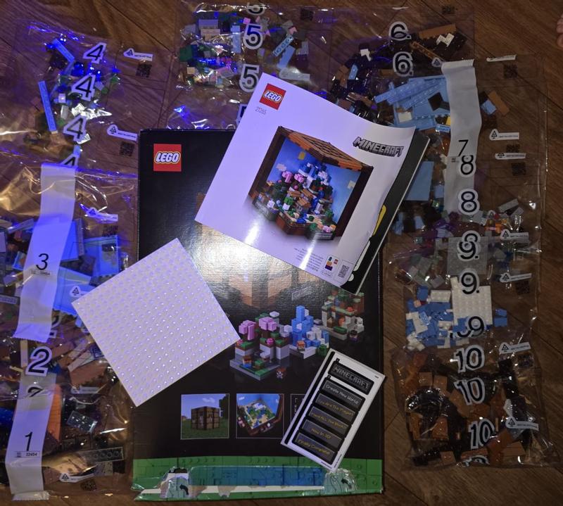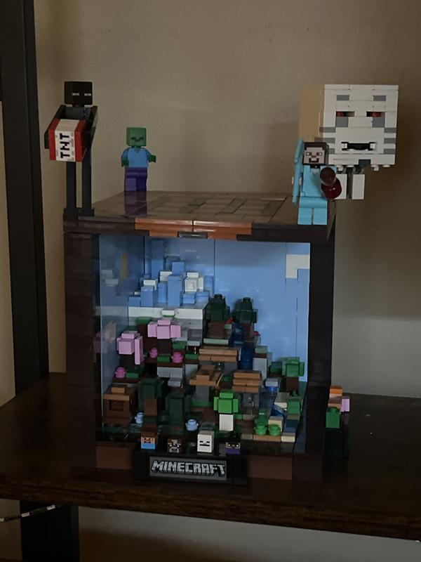 I'm one of these grown-ups who grew up with Lego and now have a room full of adult Legos. My daughter grew up with both Lego and Minecraft, so this was a must-buy for me. Even though this is marketed for adults, my daughter built this herself at age 9 (she let me build one or two bags to be nice, even though she didn't need to). It's a brilliant piece. While other Minecraft sets are more literal interpretations of the Minecraft world, this one is a little more abstract. What's brilliant about it is that even though the biomes are reductive, they're stylized in ways that you can immediately tell what they represent. The cherry grove biome with its pink trees, the ice spikes biome with its giant blocks of blue and white ice, the villages with their gable roofs, and even the adorable little representations of characters like Steve, Alex, and mobs, all reduced to three 1x1 thin square blocks. Each of the biomes is its own standalone piece, but they all come together to form the diorama. It's one of the most brilliant designs I've seen, and it all fits within a 5.5" x 5.5" x 5.5" cube. We buy a lot of licensed products, but Lego is one of the few that you can tell really share passion for the brand, perhaps thanks to their shared creative DNA. This set is full of little details and surprises, such as the slanted "quotes" you see on the splash screen of the game and the "proper" shade of green for oak, spruce, and birch trees. One of the most clever builds are the caves...you build part of a lush cave, a dripstone cavern, and an abandoned mineshaft, but they're all hidden in the corner so that only the builder knows they're there. This definitely falls under one of my top 10 builds, and bear in mind that I've build hundreds of sets over the years. Highly recommended.