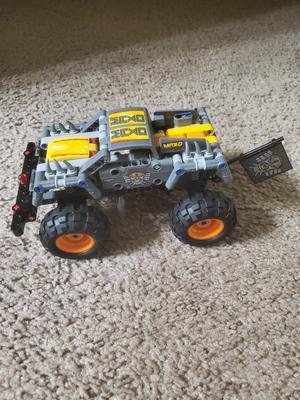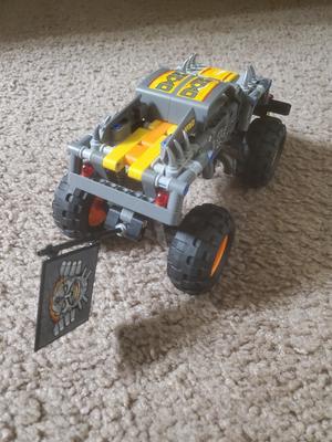 I really enjoyed building this monster truck because it was easy and challenging at the same time. I like that when you pull it back it drives forward. It’s trunk opens and it has a flag that moves freely. I didn’t like the spikes though.