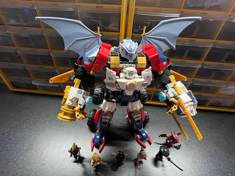 This ultra combine an Mech is something Lego has done before yet they still haven’t run out of ideas. Zane as the centrepiece with his new suit from season three part one of dragons rising is a cool ad which is exclusive to this set so and pixel have also come back with a jet and Road buggy which combines to be the arms and legs of this build Riyu in his adult form is the head and the wings of this build the accuracy to the show is great and the possibility is also very top quality. The mini figures are also great as you get dragonion warrior Zane pixel who has just come back sora and nokt although it is expensive it’s so worth it. It’s also very easy to switch it back from separate vehicles and into the combiner mech itself. Well done Lego five star review.