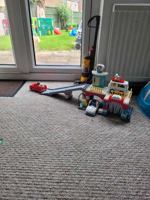 My son loved helping to build this lego duplo set. His favourite part is the combi van of which he insisted the bird drives it. Overall he enjoyed the parking & carwash. However he soon showed less interest in the concept and since then only ever plays with the 3 vehicles, animals and people provided and he drives the vehicles up/down the ramp. He does not tend to use the whole set.He has only recently turned 3 so perhaps when he is abit older he will be interested in using the entire set. He was able to assist with the building of it having experience with building with lego duplo. The colour step by step booklets provided is great. I would have liked to see the blue suitcase be able to connect to the top of the combi van. The suitcase sits on top of the combi as shown on the box but thats it, so it just falls off. My son ended up placing the suitcase inside the combi with the bird and a person. I would recommend this set but I think the retail price is abit high for what you get.