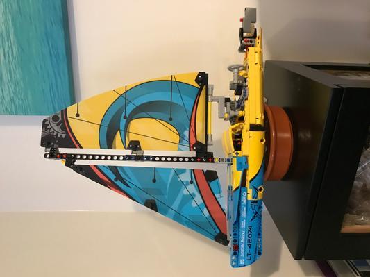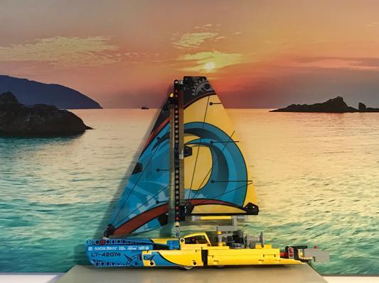 I was at the mall and had my eye on getting this kit. I like the catamaran version better then the single hull. I was sad to find that it did not have a active steering setup that I seen in the first model. I took some time and added it in myself. I have included pictures for those that may also want to add a steering wheel. I moved a chair to the back as well, to tie the addition into the model better. Would love to see a larger Technic model of a sailboat with a weighted keel and stand. A taller and more to scale main sail and jib would also be nice.