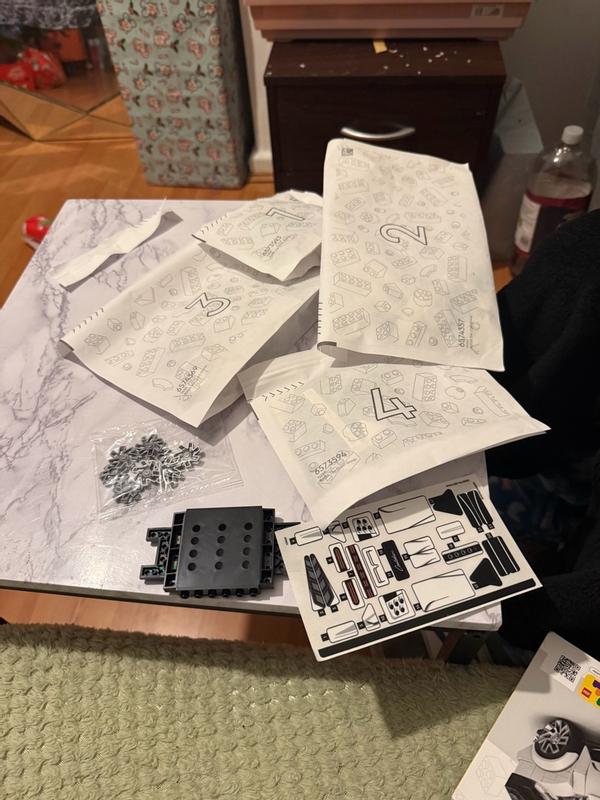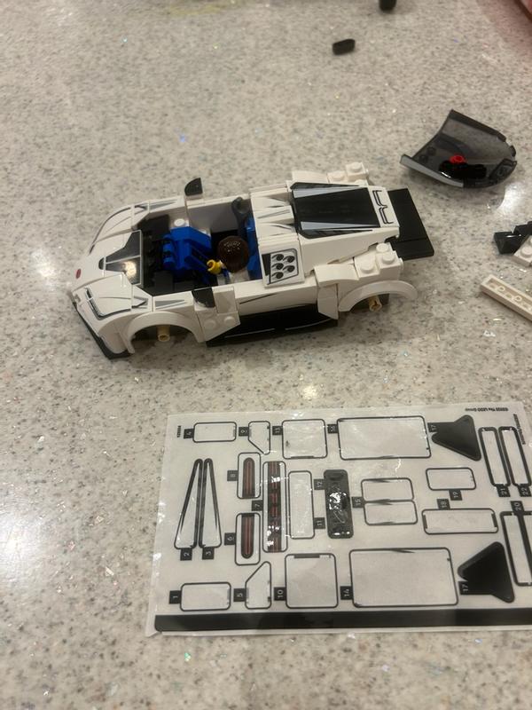 I have 2 critiques: 1 - The white print on the windshield does not match the white Lego bricks in the set. 2 - The last instruction, for step 96, shows the incorrect orientation for the wheel spokes. The left box shows how to put the wheel spokes on and it points to the right side of the car but all the photos, even on the front of the box, show that wheel rim orientation should be on the left side of car. Other than those issues, this is a decent Lego set 7/10.