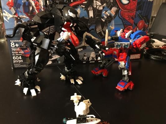 This is a really cool set. I really like the giant venom. It is a lot bigger than it looks. I don't like how they made a smaller venom on top because this isn't a venom mech(that's a different set) this is a giant venom. I like the Spider-Gwen figure. Her hover board is in my opinion a little too big. The Aunt May fig is good but I would've liked an ice cream cart to go along since she is in fact holding an ice cream cone. The Spiderman mech is cool and it stays standing fairly well. I do think that it's right hand with the claws are a little too big. I would've liked Spidey to be more protected in there with a glass visor or something. I hope that marvel somewhat connects this to the comics by eventually having the Green Goblin join in and (don't hate me) kill Gwen. This set was a great value and I would definitely recommend this to a friend.