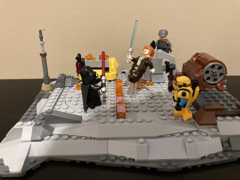 I planned on hating this thing. Basically read the bad reviews and thats what I thought I would think about it. Yet it suprised me. Even though I only bought it to sit on a shelf, the play features were great. It also looks great on a shelf too. You can display it in so many ways. With or without the fire on the ground, the lava tipped over, and/or clear pieces to make obiwan float. Yes its a grey slab but thats true to the show. The minifigs are amazing aswell. Overall not a bad lego set by any means.