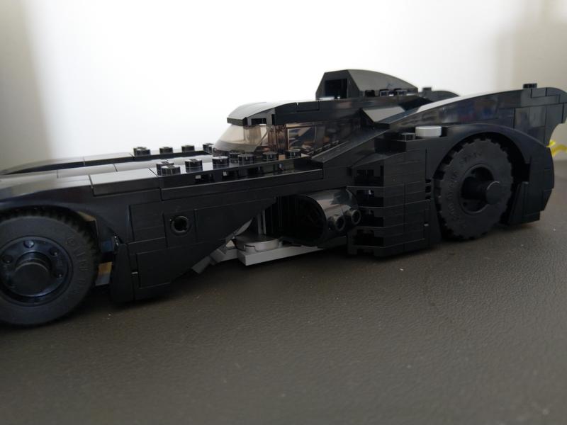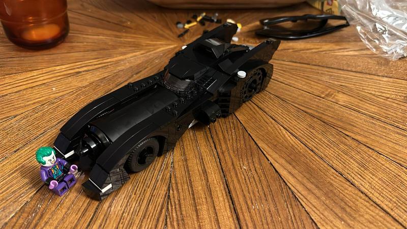 A bit more complicated than the batmobile-pursuit-batman-vs-the-joker-76264. Took a bit longer to make in comparison to 76264. I enjoyed putting it together. To note: The clear plastic piece came loose at the very last stage after everything was put together and it was an inside piece. I don't mind as can't see it from the outside Very nice shape just like the batmobile in the 1989 film. Good size. I enjoy the pop up weapons function the panels fly off at the turn of a dial. Also the flame rotates when the wheels turn. Lovely figures. Nice set.