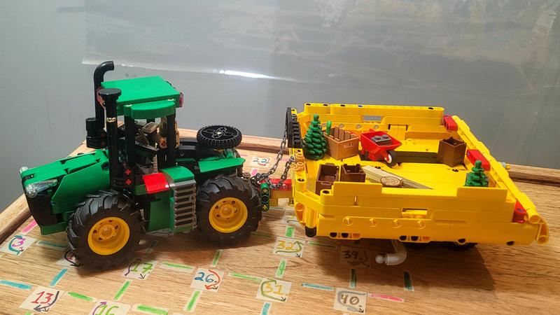 I have never own a mini technic set before but the John deere tractor and trailer combo just looked too good to pass up. I love the details that went into this set like the little seat and steering wheel and the trailer is well designed too and stays up in the dumping position too which is cool. It was a fun little build that didn't take more than 2 hours for me to put together.