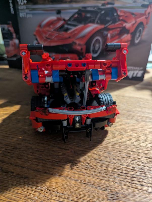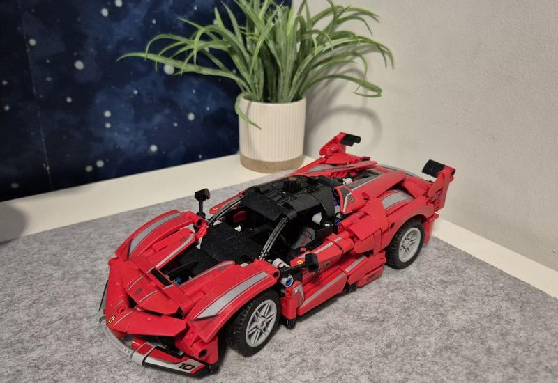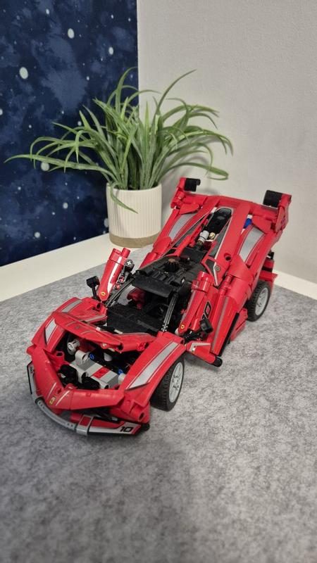 Fantastic set and quality time with my son I had a lot of fun building the Lego Technic Ferrari FXX K with my son. When I first opened the box, we found all the parts well-organized into 7 bags. This was very helpful as the model is made of 897 pieces. The step-by-step instructions included clear images and were easy to follow. The difficulty level felt a bit high for the 10+ age guide; I am guessing it is intended for kids who build Lego often and are used to the process. I had some difficulties building it, but the pieces were easy to separate if any mistakes occurred (and I made quite a few!). The Ferrari itself looks fantastic, and the attached stickers really bring the whole set to life. The fun part is the functionality: you can open the front boot and the doors, and when the car is moving, the engine cylinders move just like in a real engine. The wheels turn using a gear on top of the car, so there is no need to force them. I love the details in this piece, from the rubber tires and steering wheel to the mirrors, lights, and bumpers—just fantastic. Lego also added some spare blocks in the box in case anything was missing. Thank you for hours of fun; it was real quality time spent with my son.