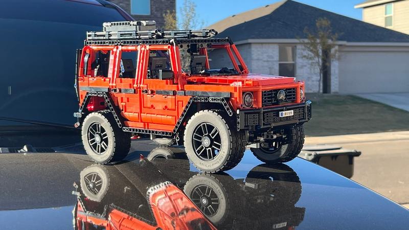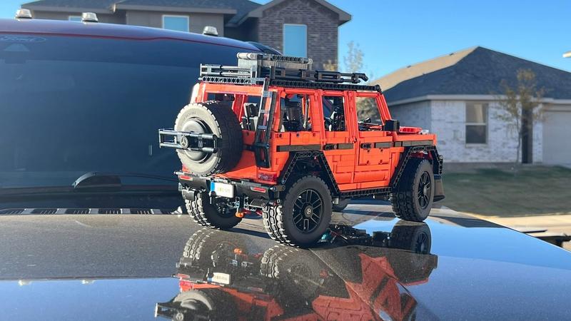 This is unmistakably a G-Wagon, the Manufaktur copper orange color makes the set standout even more with its iconic design. The build takes away the transmission complexities of other similarly sized sets which for me is just redundant, this one is single speed but retains the hi and low gear settings and as with the real thing it also has 3 functioning differentials which makes the G-wagon one of the most capable vehicles. You can lock the center and rear diffs which if put on drive or reverse gears engages the model I-6 engine which for a set of this size you’re gonna want that thing functioning. This is my 3rd Mercedes-Benz branded Technic set the first 2 being the Unimog U400 set 8110 and second the Arocs 3245 set 42043. Design-wise it’s very squared with very few angles and catches the real thing’s iconic design my only complaint however are the tires, it’s big but looks so much better with the Unimog’s tires and I was able to adapt the spare tire by doing a few design adjustment for the spare tire guard. I’m overall very impressed with the set I give it a 100/100 score.