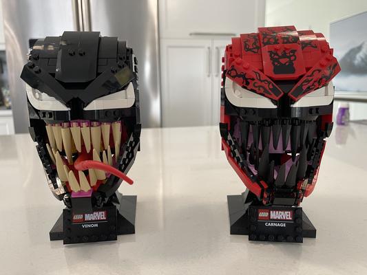 I believe this is the best marvel head set, the jaws and eyes contrast the head perfectly and the tongue and dripping saliva are great touches, however, it's quite standalone. We really need a spiderman or maybe ghostrider, daredevil or similar sets to accompany this and the sticker-heavy carnage bust
