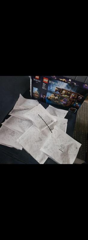 This was gifted and given as a Christmas present. The lego is numbered bags if you're not familiar with the set up. This ensures steps are broken down and you or the child are not overwhelmed. This has great attention to detail if you've watched the series Wednesday, this is intricate but really satisfying to build.