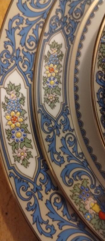 This dinner and flatware set has truly captivated me. The intricate design of the fruit and vines features a 3D effect, allowing for a tactile experience. The set's durability is noteworthy. Its refined beauty and elegance make it a standout. The meticulous attention to detail on the plates and teacup is impressive. The gold trim adds a touch of luxury. I am contemplating gifting a set to my family members, as owning a superior dinnerware set is always a wise decision. This set has become my top choice, and I appreciate its ease of maintenance and warranty. It is undoubtedly worth purchasing.