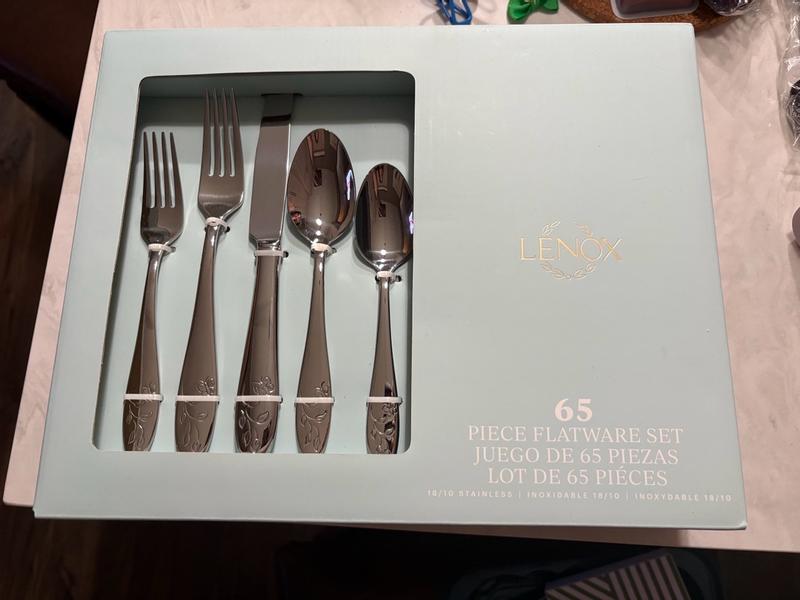 The Lenox Butterfly Meadow 65-piece flatware set is a delightful addition to my dining experience, blending elegance with a touch of whimsy. Here's a breakdown of what makes this set stand out: Design: * The design is inspired by the beloved Lenox Butterfly Meadow dinnerware, featuring delicate butterfly and floral motifs. This adds a charming, nature-inspired aesthetic to my table setting. * The handles are a gentle, scalloped shape, which contributes to the set's overall elegance. * The mirror finish gives the flatware a polished and refined look. Quality: * Crafted from stainless steel, this flatware is durable, rust resistant, and has a lasting shine. * The weight of the pieces give them a balanced and high-quality feel in hand. Functionality: * The 65-piece set provides service for twelve, making it ideal for families. * In addition to the standard place settings, the set includes essential serving pieces like a serving spoon, pierced serving spoon, meat fork, butter knife, and sugar spoon, offering versatility for various dining needs. * The flatware is dishwasher safe, simplifying cleanup. It's a great way to bring a touch of nature's beauty to my table, and its durability ensures it will be a cherished part of my dining experience for years to come.