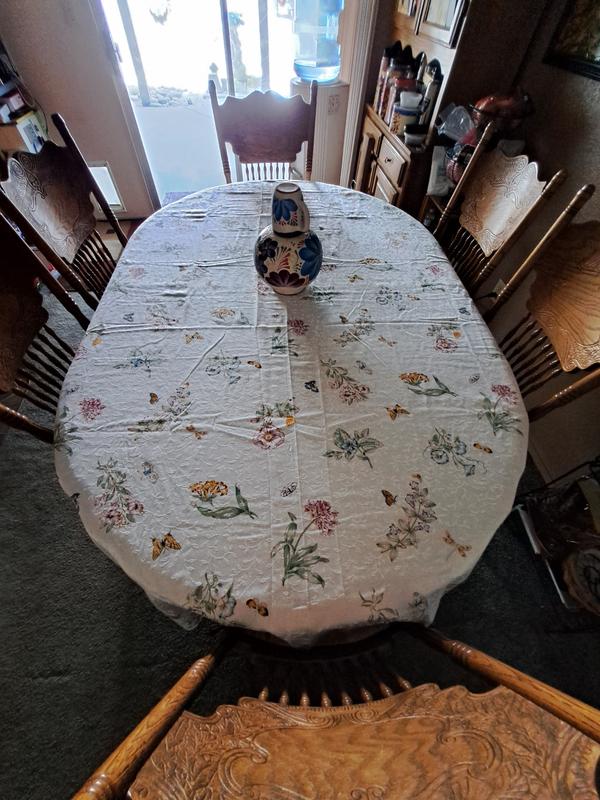 Love the beautiful pattern. Adds color to my kitchen. Matches my dishes!!!