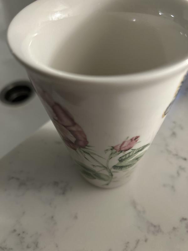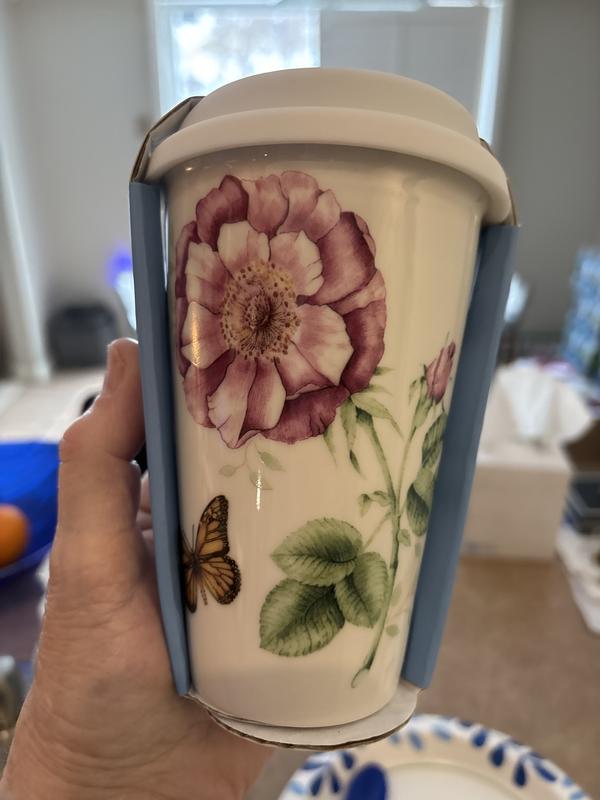 Take the springtime charm of Butterfly Meadow dinnerware to go with this porcelain travel mug, featuring an insulated double-walled design and silicone lid. From Lenox.