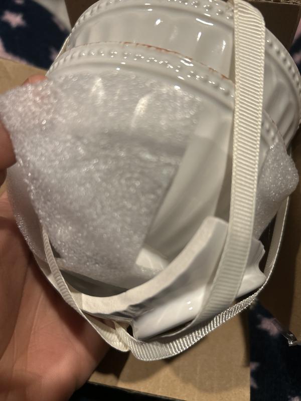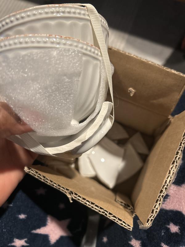 I wish there was a way to receive a replacement rather than having to return this set. The other 2 bowls look fine. The bowl in the middle arrived broken. Ver disappointed but these things happen. The small box the bowls were in were in a larger box which held other items and easily moved around. Gave it s as 4 because it’s a lovely little set if only one of the pieces was not broken. I think they would have been packed better to prevent breakage. I will try to order again in the hopes the next set arrives intact.