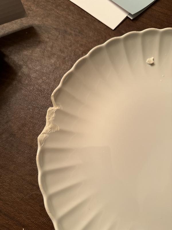 The set of four dinner plates arrived in an open box, which had minimal protection. The plates were all broken, which is a shame because they were beautiful. The person who boxed them up clearly didn’t do a good job!