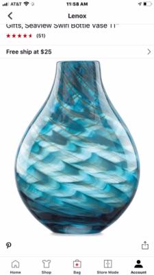 This is a beautiful vase. I bought it for a housewarming gift and my friend loved it. Due to the multiple colors of glass no 2 are alike so even though it didn't exactly match the online picture the primary shade of teal/blue was right.