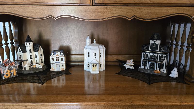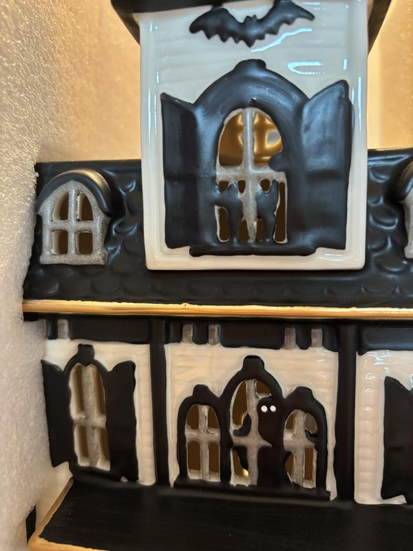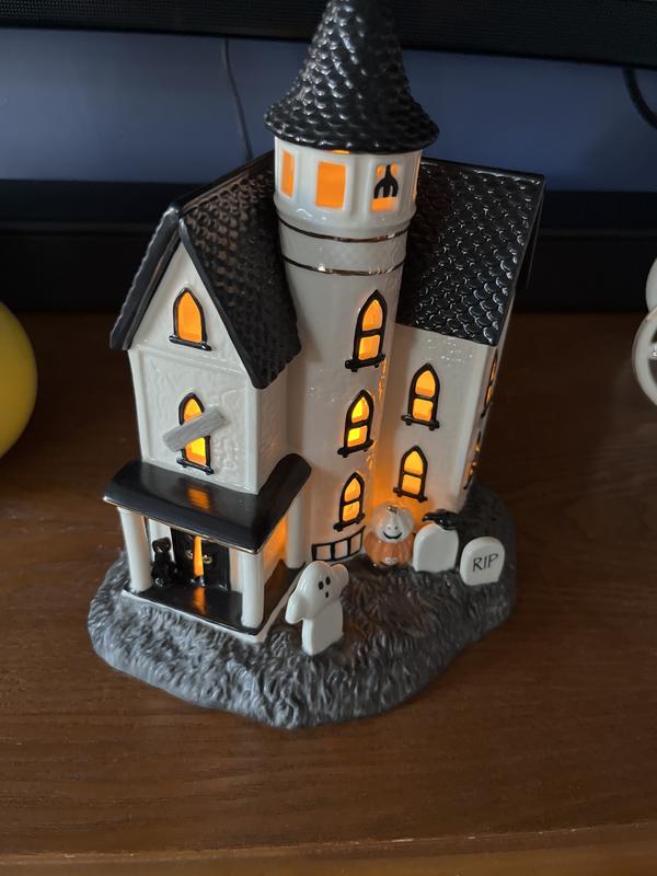 Wonderful Great Value, Eerie when lit. Realistic Mansion with graveyard, raven, pumpkins and Ghost