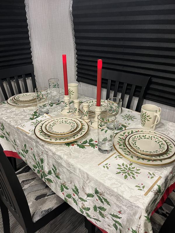 I could not believe my luck, it matches my Lennox Holiday china and was on sale! It even fits my strange-sized table perfectly