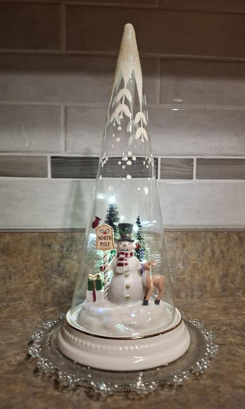 Lighted Christmas Cone With North Pole Snowman Scene Figurine
