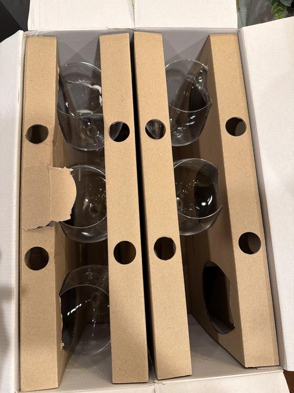 I ordered two sets of these as Christmas presents (we own the same glasses and love them)! The boxes were shipped inside a cardboard box with zero protection around the individual wine glasses. The moment I picked up the shipping box from our porch, all I could hear was shattered glass inside. SO DISAPPOINTING! I now see many other reviewers with the same issue. Do better, Lenox! These were shipped from the manufacturer directly, according to the label. 2 stars because I love the glasses, but not if they are broken in a million pieces. :(
