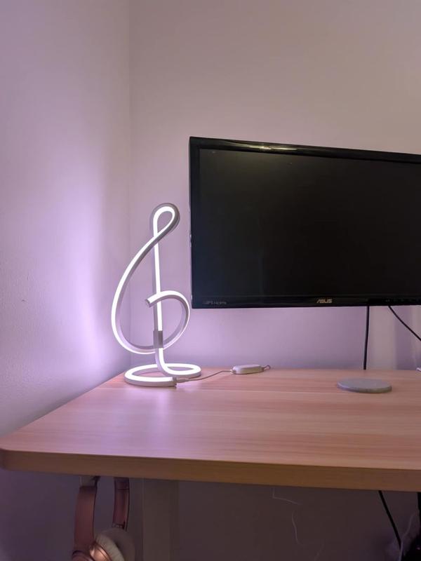 Super cute. Adds ambiance. Quality and adjustable to light preferences. The treble clef adds a little personality to my desk. Easy to navigate with phone. Great and impressive product.