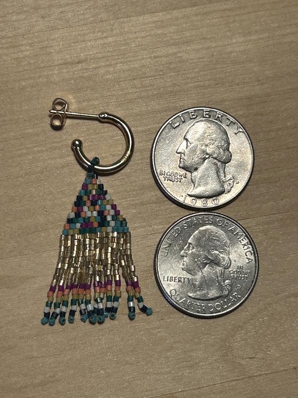 - Versatile 2-in-1 Design: These brass hoop earrings offer a versatile and stylish option. Wear them in two ways: attach the short fringe for extra flair, or wear the hoops on their own for a more understated look. The multi-color muted beads create a