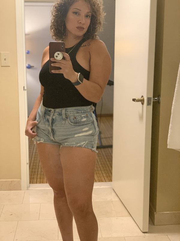 Levi’s name is synonymous with quality. You’ll never see anybody right about the bad quality you ever got from Levi’s because they do it right and they most definitely turned out a great pair of cut off shorts. I will have these shorts for a very long time because they’re that good thick heavy duty denim that you get from Levi’s. The length is about 3 inches insane but I did notice in person that I didn’t notice online. Is that their shorter in the front and a bit longer in the back which is pretty cool, it covers your buns! Great shorts great laugh if you got great legs because these things show everything! Beware they’re short