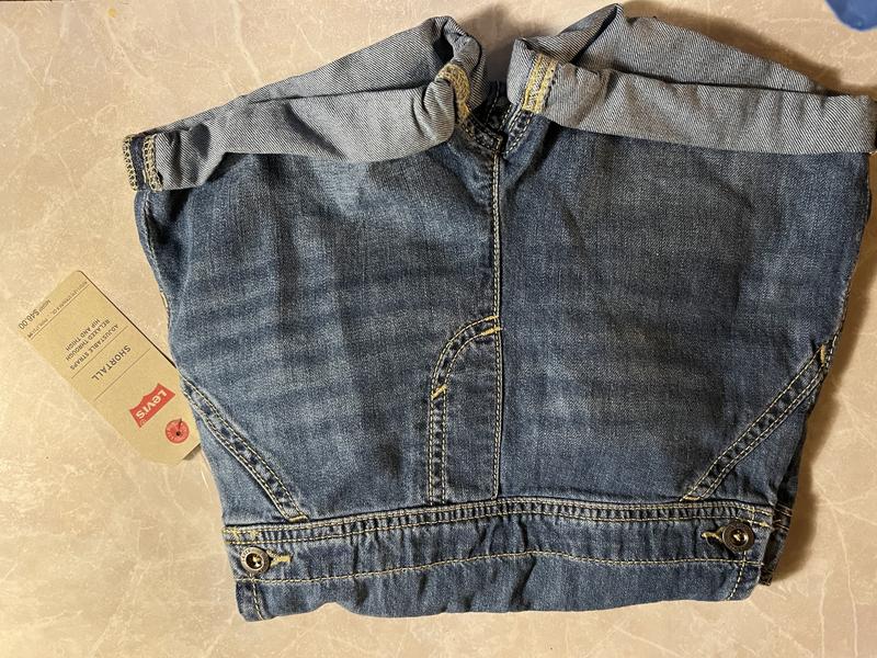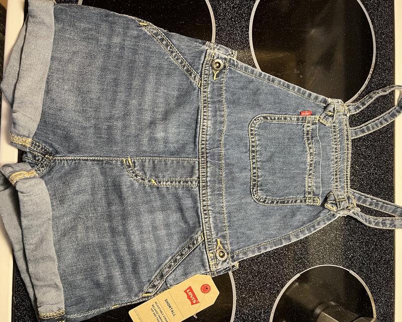 These Levi knot strap shortalls are super cute! They fit true to size and are not booty shorts length! As always Levi did not disappoint in the quality department, Im sure these will pass down through through my 3 girls and some cousins before they start to fail.