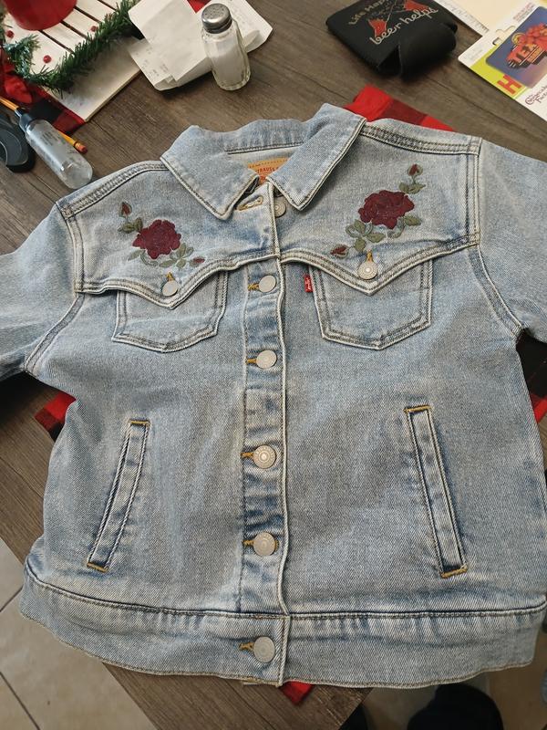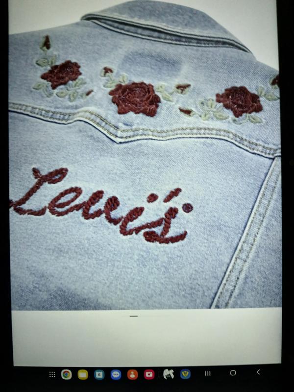 Extremely disappointed with my purchase the picture of the jean jacket that I thought I was purchasing had embroidery of the flowers on the back of the jacket with Levi also embroidered in big letters when I received the jacket it had the two embroiders on the front and absolutely nothing on the back of it. This would have made a big difference on whether I was going to purchase or not. I most likely would have gone with a different type of jean jacket but bought this solely on the purpose of I love the way the back of the jacket looked with the Levi and the flowers again very disappointed on the product