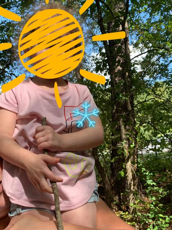 This style is such a nice cut. The material isn’t super heavy and it’s a cut that is more big girl than toddler. I wish I could find it in other colors too!! Washes easily with no strings or seam issues. Survived washable paint with ease.