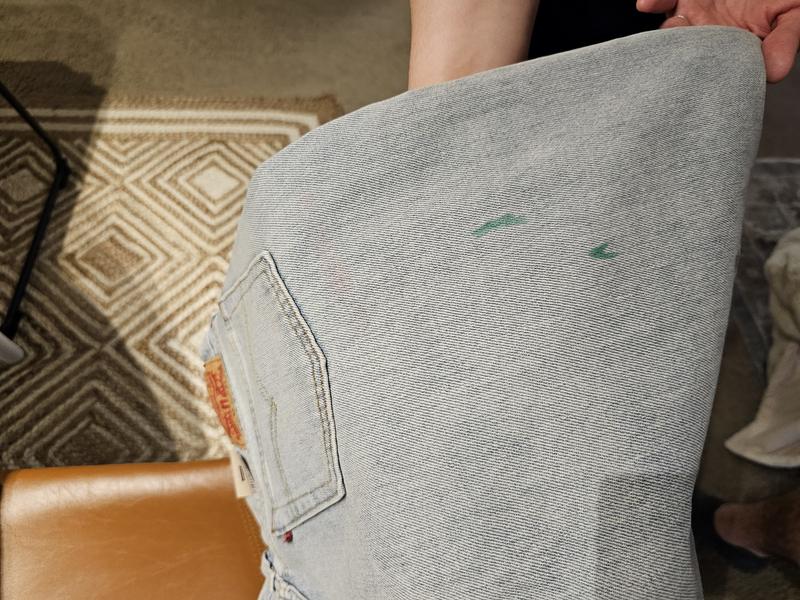 You clearly cannot see all the pen marks & colored marker spots all over these jeans in the advertisement listing. It looks like a 3rd grader wore these to art class! NOT HAPPY AT ALL.
