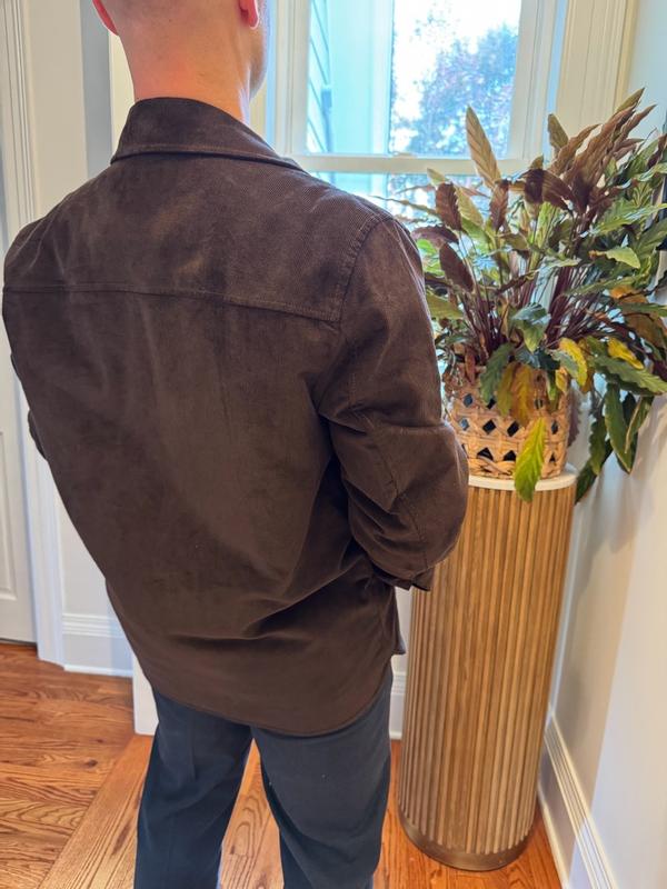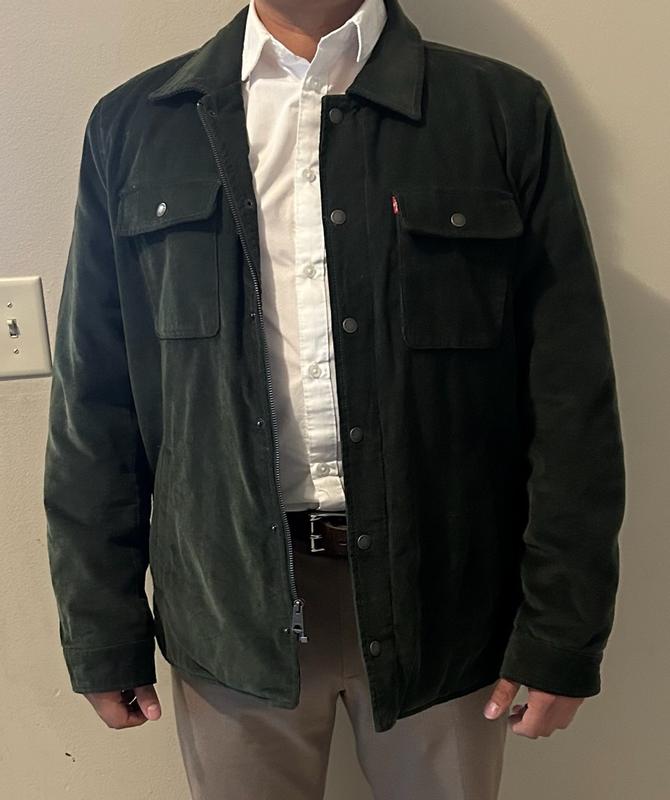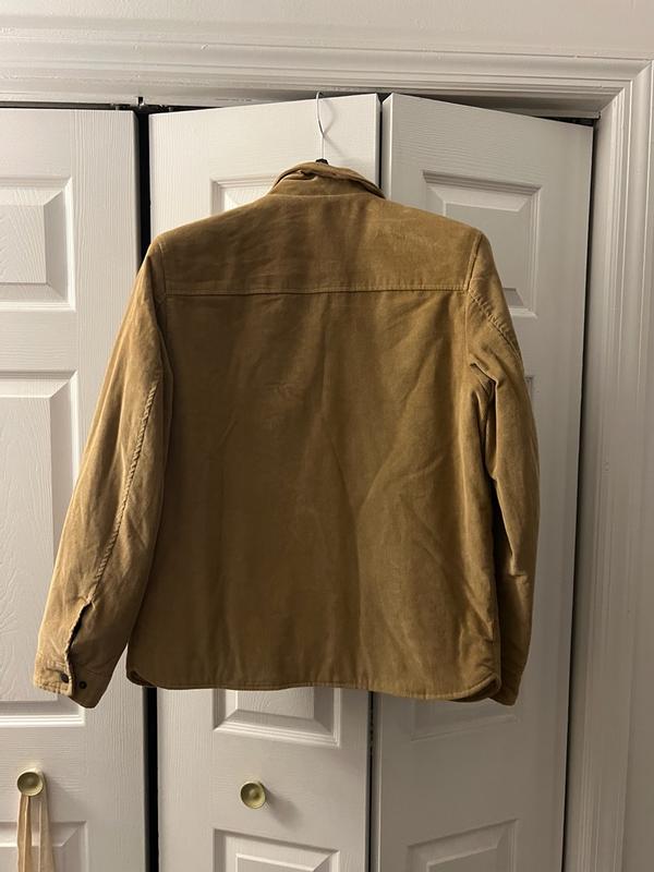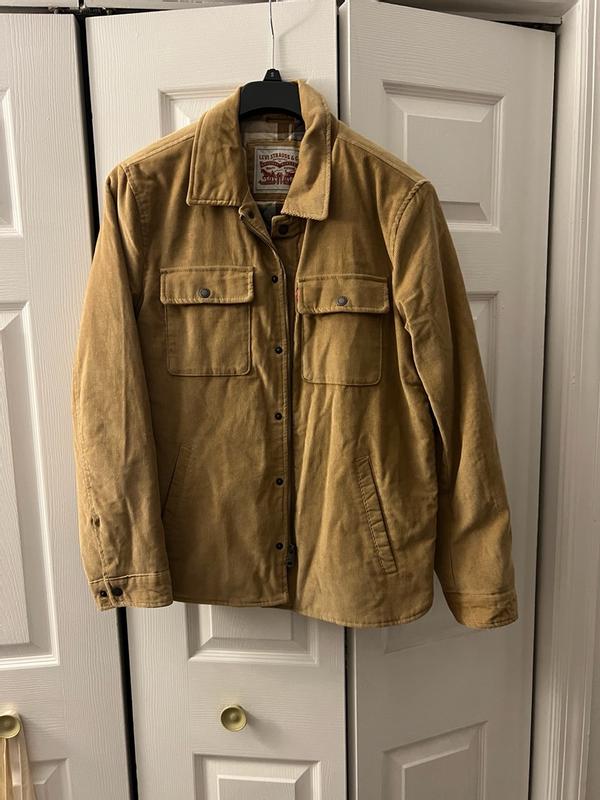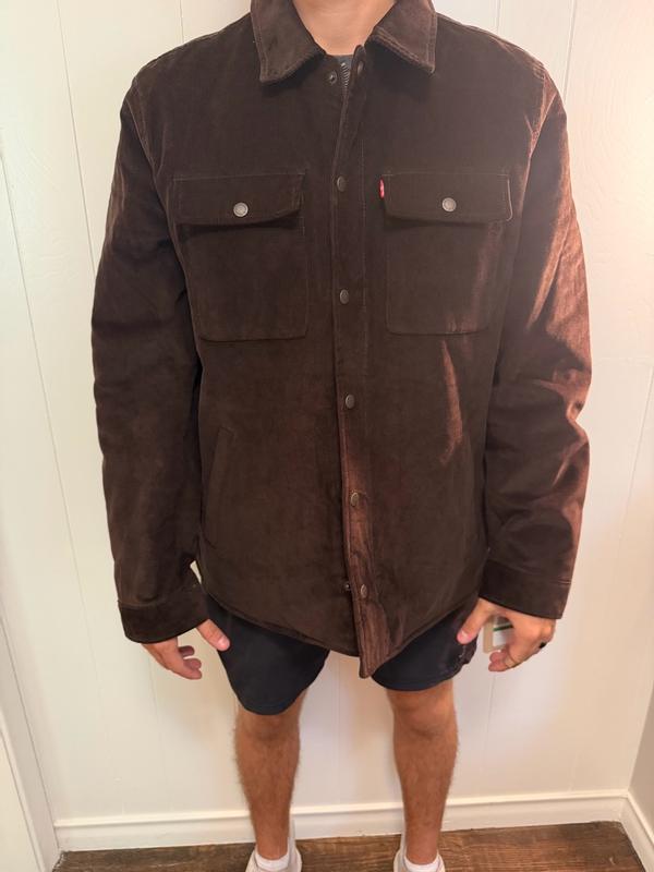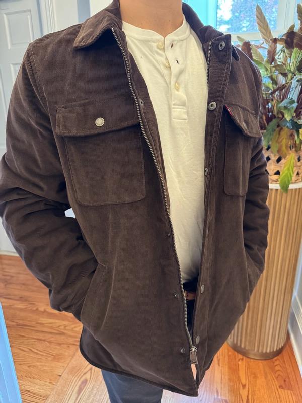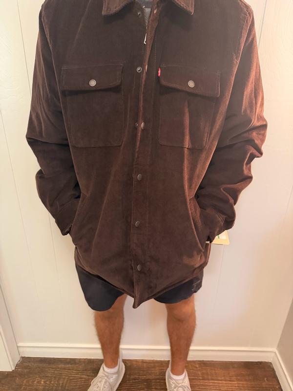 This corduroy brown coat from LEVIS is a heavy casual shacket that goes great with jeans on a fall day. A bit oversized for comfort and laying if you want. Insulation seems good enough for cold fall days or even mild winter days. Appears durable but may not hold up in the long run.