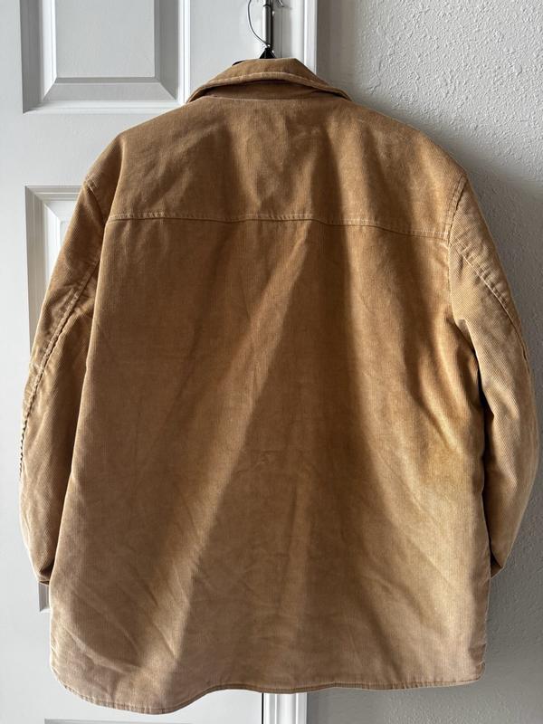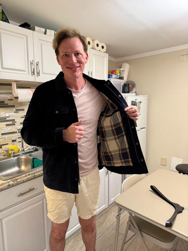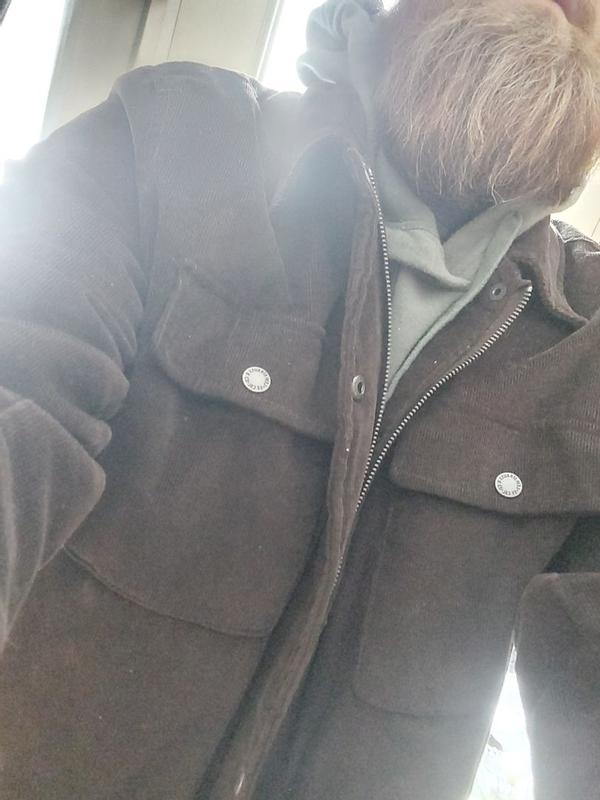 Awesome jacket. Love the corduroy and flannel inside. Fits true to size, though arms might run a tad bit long. Love that it has both zipper and buttons to open and close. One of my favorite style jackets done right.