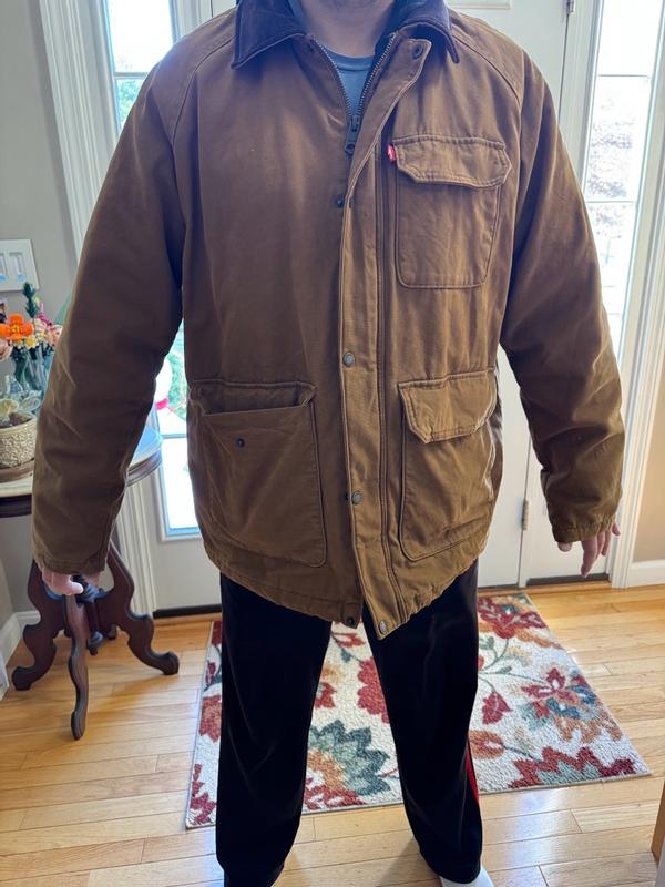 Levi’s cotton Batn coat is so warm amazing fall color fit perfectly well the material is very good quality I went in snow yesterday and it kept me so warm also got the compliments for the quality fit and color definitely perfect for me the best part is sizing coz size always been an issue for me but this fits as if ment for me and the zip quality is also good overall I am very happy with this coat