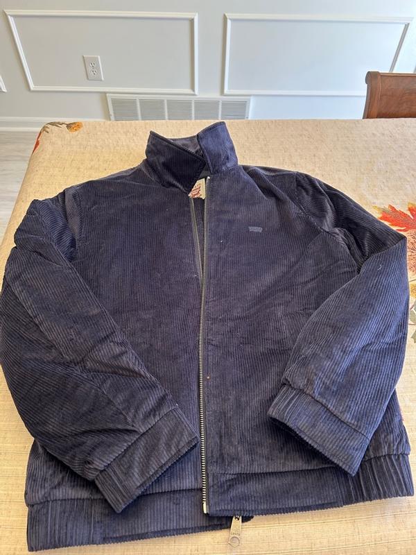 Really cool corduroy jacket. Navy color goes well with a lot of different outfits. Has a good thickness to it that is nicer for cooler weather. Fits great. True to size.
