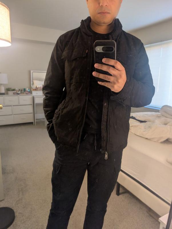Levi's cotton military jacket is fresh and screams coolness! I love the fit of this bad boy! I could sleep in this jacket because it is so comfortable! Its the perfect thickness which means that it's very durable! I highly recommend this piece of beauty!