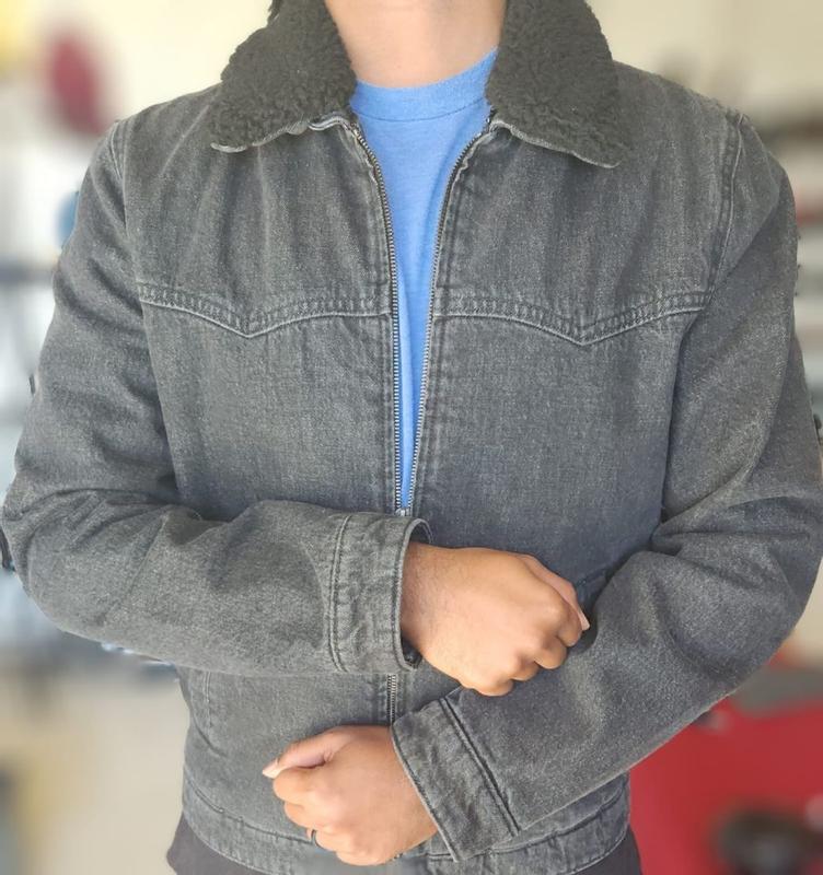 So the size is a made a little long for someone with broad shoulders and little bit taller. I’m 5,7” so someone about 6ft or taller. I would go with a smaller size than you think you were. Definitely try the size out in store to make sure if it fits you. And if so then you can either get it on the store or online, whichever way you prefer. The removal “Sherpa” is little bit hard to put back on after it’s removed. But I did like how it was removable for different locks. It is comfortable and warm because of the lining inside. There is a pocket inside as well which is really nice.