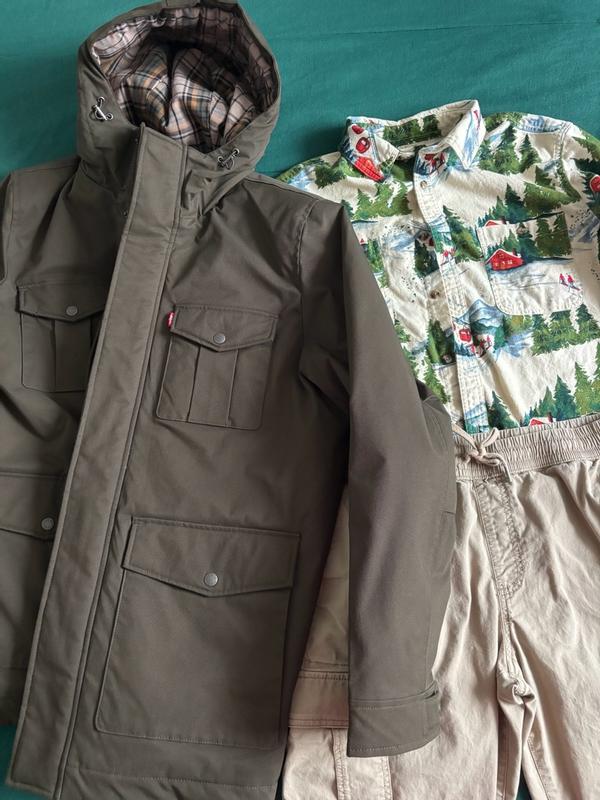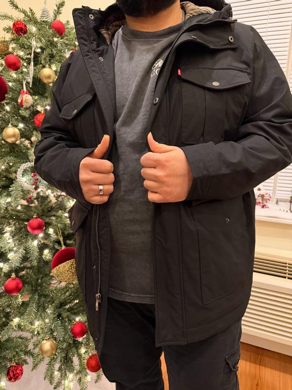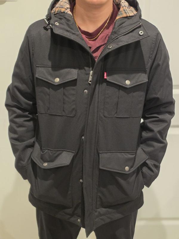 Best Levi’s coat I’ve ever had! It’s loose fitting, lightweight and great for pulling in close against the wind or for layering over sweaters! You can really tell that quality materials were used for this coat from the fabric down to the stitching. I just can’t say enough good things. I love the color and the little pop of flannel inside the hood. I love the deep pockets. I love the length. It’s not too long to sit down comfortably but is long enough you don’t get frostbite on your backside if you raise your arms! I’ve been wearing and enjoying this coat so much this winter! 10/10
