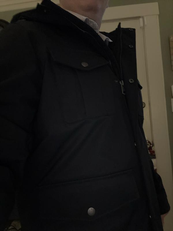 I received this product for free in exchange for an honest review. This is a nice medium weight outerwear. The exterior shell is water resistant and the inside liner is soft and comfortable. The one thing I dislike is the backside of the buttons. They are metal washers set flat at a straight 90-degree angle so every time my hand rubs up against it on the inside of the sleeve, it feels like it could cut my hand.