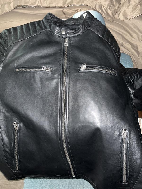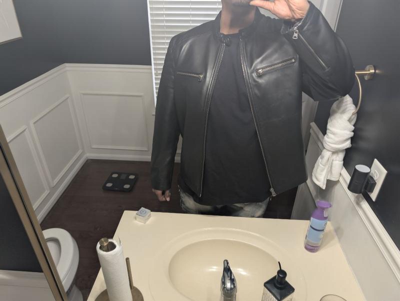This jacket looks great and fits pretty well perhaps slightly looser than I would like but if I’m wearing a sweat sweater, it is perfect. The Leather has a very nice appearance. It’s pretty lightweight but very comfortable. The quilted details on the jacket really add to the overall look. I’m definitely happy. I purchased it.