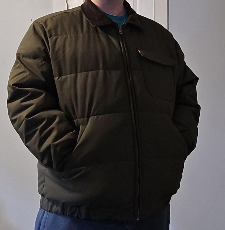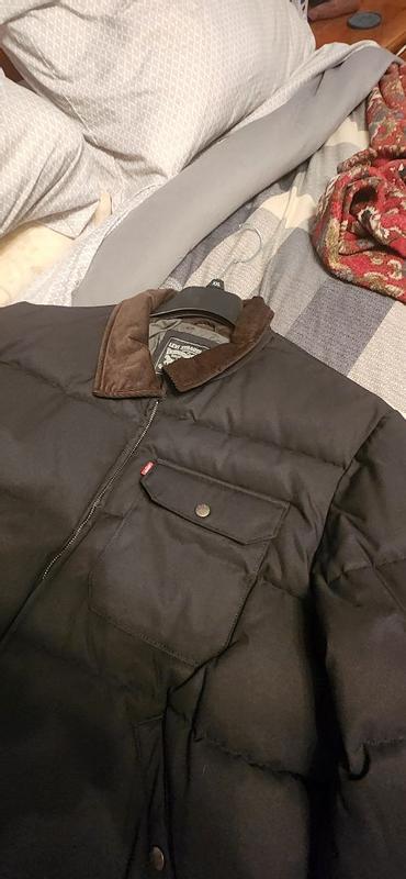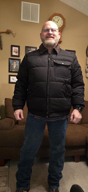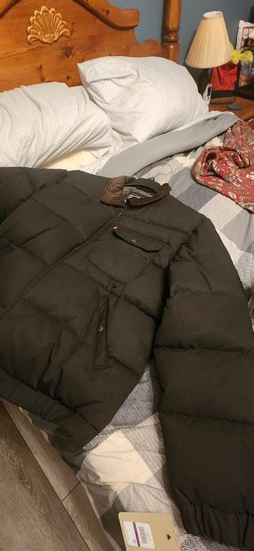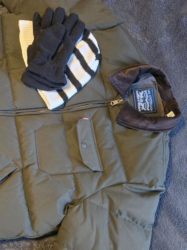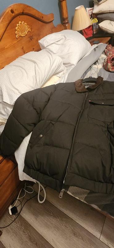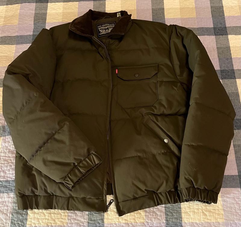 Levi puffer jacket is absolutely the most comfortable jacket I have. It's tue to size. It's a really nice color olive green. I would definitely recommended this jacket.