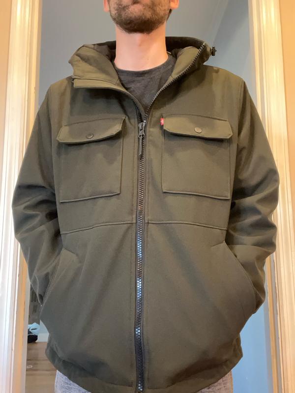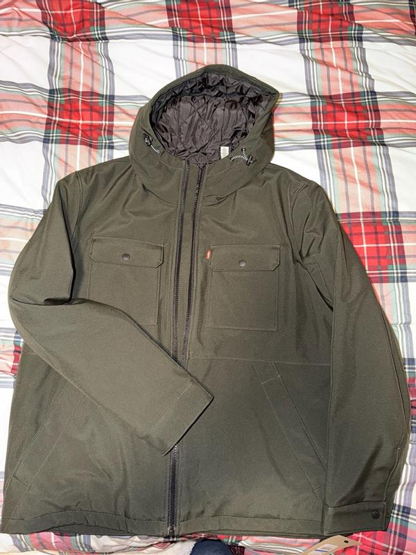 Levi’s Filled Soft Shell Performance Hoodie is a game-changer for cold weather! The mid-weight filled insulation with sherpa lining keeps you incredibly warm without bulk, perfect for winter outings. Water-resistant soft shell repels light rain/snow, while the adjustable hood and rib knit cuffs seal in heat. Stylish trucker/bomber design with Levi’s classic vibe—fits true to size, looks sharp. Super comfortable and durable. Minor downside: a bit heavy for mild days. Highly recommend for versatile performance!