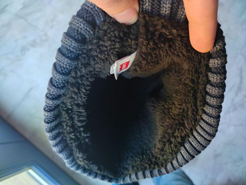 This is a simple but classic looking beanie with some modern convenience. The inside is fleece lined and super warm. The outside is 100% cotton, which is hard to find.
