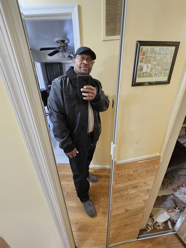 Men's Sherpa Collar Faux Leather Bomber Jacket